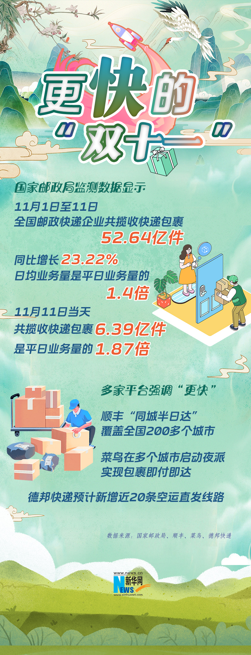 快遞量級展現向好趨勢。國家郵政局11月12日發(fā)布數據,2023年11月1日至11日,全國郵政快遞企業(yè)共攬收快遞包裹52.64億件,同比增長23.22%,日均業(yè)務量是平日業(yè)務量的1.4倍。11月11日當天,共攬收快遞包裹6.39億件,是平日業(yè)務量的1.87倍,同比增長15.76%。
