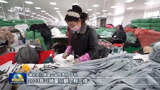 湖北天門(mén)服裝企業(yè)負(fù)責(zé)人 于兵:2023年(銷(xiāo)量)翻了有三倍,確實(shí)沒(méi)想到(銷(xiāo)量)會(huì)爆發(fā)得這么厲害。