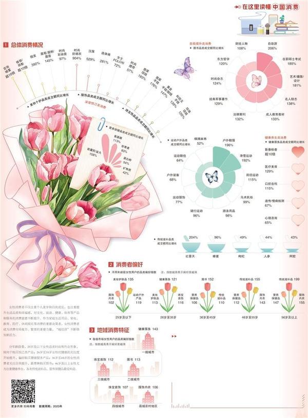 伴隨社會地位和經(jīng)濟實力的不斷提高,女性的消費觀念和習(xí)慣正在發(fā)生轉(zhuǎn)變,她們在扮演好社會賦予的各種角色的同時,愈加認(rèn)可自我價值,更加關(guān)注“為自己投資”“讓自己快樂”。數(shù)據(jù)顯示,女性群體在文化旅游、運動戶外、醫(yī)療保健等方面的消費占比均有明顯增長,深度悅己、自我提升、健康養(yǎng)生成為她們的生活關(guān)鍵詞。