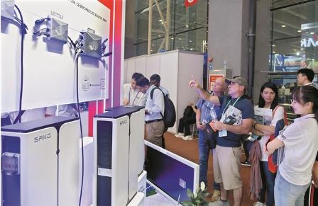 4月16日,采購商在第135屆廣交會上了解太陽能發(fā)電設(shè)備。電動載人汽車(新能源汽車)、鋰電池和太陽能電池被稱為我國外貿(mào)“新三樣”。統(tǒng)計數(shù)據(jù)顯示,2023年,我國出口機電產(chǎn)品當(dāng)中,電動載人汽車、鋰電池和太陽能電池等“新三樣”產(chǎn)品合計出口1.06萬億元,首次突破萬億大關(guān)?!靶氯龢印鳖I(lǐng)跑出口,激發(fā)外貿(mào)新動能,推進中國經(jīng)濟高質(zhì)量發(fā)展。本屆廣交會上,“新三樣”相關(guān)展區(qū)“光電鋰”交易持續(xù)火爆。 新華社記者 盧漢欣 攝 (責(zé)任編輯:梁艷) |