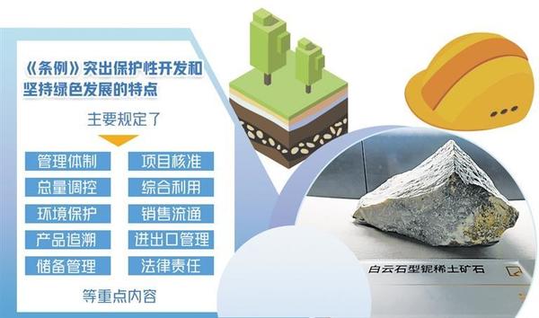 《稀土管理條例》(以下簡稱《條例》)日前公布,自2024年10月1日起施行。《條例》明確,稀土資源屬于國家所有,國家依法加強對稀土資源的保護,對稀土資源實行保護性開采。同時,鼓勵和支持稀土產(chǎn)業(yè)新技術(shù)、新工藝、新產(chǎn)品、新材料、新裝備的研發(fā)和應(yīng)用,持續(xù)提升稀土資源開發(fā)利用水平,推動稀土產(chǎn)業(yè)高端化、智能化、綠色化發(fā)展。專家認(rèn)為,《條例》首次以行政立法形式規(guī)范稀土資源的開發(fā)利用,主要規(guī)定了管理體制、項目核準(zhǔn)、總量調(diào)控、綜合利用、環(huán)境保護、銷售流通、產(chǎn)品追溯、進出口管理、儲備管理、法律責(zé)任等重點內(nèi)容,突出了保護性開發(fā)和堅持綠色發(fā)展的特點,對推動稀土產(chǎn)業(yè)高質(zhì)量發(fā)展具有重大意義。規(guī)范稀土資源開發(fā)利用稀土是現(xiàn)代工業(yè)中不可或缺的重要元素和關(guān)鍵戰(zhàn)略資源。中國有色金屬工業(yè)協(xié)會黨委書記、會長葛紅林表示,稀土被譽為“工業(yè)維生素”,是高新技術(shù)產(chǎn)業(yè)和國防科技工業(yè)的關(guān)鍵原料,是關(guān)系國家安全和國民經(jīng)濟命脈的戰(zhàn)略資源,對推動新型工業(yè)化發(fā)展具有不可替代性。中國稀土集團黨委書記、董事長敖宏介紹,稀土是改造提升傳統(tǒng)產(chǎn)業(yè)、發(fā)展戰(zhàn)略性新興產(chǎn)業(yè)和國防科技工業(yè)不可或缺的關(guān)鍵材料。隨著新能源汽車、風(fēng)力發(fā)電、智能制造等戰(zhàn)略性新興產(chǎn)業(yè)和節(jié)能電機等傳統(tǒng)產(chǎn)業(yè)改造升級,全球稀土需求快速增加。近年來,我國圍繞稀土行業(yè)準(zhǔn)入標(biāo)準(zhǔn)、行業(yè)整合、環(huán)境保護等方面出臺了多項政策措施,產(chǎn)業(yè)發(fā)展良好,帶動建立起相對完整的產(chǎn)業(yè)體系,資源儲量、產(chǎn)量、消費量、貿(mào)易量均居世界第一位,并持續(xù)加強稀土資源保護開發(fā)和合理利用,為科技進步和經(jīng)濟社會發(fā)展作出了突出貢獻。瞄準(zhǔn)新一輪科技革命和產(chǎn)業(yè)變革方向,我國加快稀土供給側(cè)結(jié)構(gòu)性改革,不斷開辟發(fā)展新領(lǐng)域新賽道、塑造發(fā)展新動能新優(yōu)勢,產(chǎn)業(yè)鏈不斷完善,產(chǎn)業(yè)規(guī)模不斷擴大,產(chǎn)品品種不斷豐富,產(chǎn)品質(zhì)量不斷提高,市場規(guī)模不斷擴大,國際影響力持續(xù)提升。但稀土管理仍存在一些突出問題,包括覆蓋全產(chǎn)業(yè)鏈的管理職責(zé)、監(jiān)管措施有待完善,產(chǎn)業(yè)創(chuàng)新能力和綠色化智能化水平亟需提高,行業(yè)秩序需要進一步規(guī)范,整治非法開采或非法冶煉分離、無指標(biāo)或超指標(biāo)生產(chǎn)、買賣非法稀土產(chǎn)品等違法行為的手段不足、處罰力度不夠。隨著行業(yè)的不斷發(fā)展,產(chǎn)業(yè)鏈條的持續(xù)延伸,稀土產(chǎn)業(yè)缺少綜合性法律法規(guī)的問題日益凸顯,難以滿足行業(yè)高質(zhì)量發(fā)展需求。稀土行業(yè)涵蓋開采、冶煉分離、產(chǎn)品流通、二次利用、進出口以及儲備等諸多環(huán)節(jié),涉及中央政府多個管理部門,亟需依法建立分工明確、密切配合的管理體制。葛紅林認(rèn)為,稀土產(chǎn)業(yè)大而不強、全而不精的問題依然存在,在制度保障銜接、資源保護性開發(fā)、原始基礎(chǔ)創(chuàng)新、行業(yè)秩序規(guī)范等方面仍面臨一些困難和挑戰(zhàn)?!疤貏e是在工藝綠色化、產(chǎn)品高端化、制造智能化方面有待提升,產(chǎn)業(yè)結(jié)構(gòu)要持續(xù)優(yōu)化,產(chǎn)業(yè)秩序需要進一步規(guī)范。”敖宏說。推進產(chǎn)業(yè)轉(zhuǎn)型升級包鋼(集團)公司黨委常委、副總經(jīng)理兼北方稀土黨委書記、董事長劉培勛認(rèn)為,《條例》為解決制約產(chǎn)業(yè)高質(zhì)量發(fā)展的堵點、難點開出了法治良方。完善了生態(tài)環(huán)境保護、資源儲備的有關(guān)規(guī)定,形成了更加科學(xué)有效的管理方式,更有利于稀土資源的保護性開發(fā);明確提出國家鼓勵科技創(chuàng)新和人才培養(yǎng),支持稀土新產(chǎn)品、新材料、新工藝的研發(fā)和產(chǎn)業(yè)化,更有利于稀土資源的高質(zhì)化利用;建立起從國家到地方再到企業(yè)分層管理、各司其職、各負(fù)其責(zé)的治理體系,并首次對違法違規(guī)行為設(shè)定處罰標(biāo)準(zhǔn),進一步加壓引導(dǎo)行業(yè)秩序整頓,更有利于行業(yè)規(guī)范化管理?!稐l例》致力于促進稀土產(chǎn)業(yè)高質(zhì)量發(fā)展。工業(yè)和信息化部原材料工業(yè)司相關(guān)負(fù)責(zé)人解讀,國家對稀土產(chǎn)業(yè)發(fā)展實行統(tǒng)一規(guī)劃,并突出科技創(chuàng)新。鼓勵和支持稀土產(chǎn)業(yè)新技術(shù)、新工藝、新產(chǎn)品、新材料、新裝備的研發(fā)和應(yīng)用。鼓勵和支持企業(yè)利用先進適用技術(shù)、工藝對稀土二次資源進行綜合利用。同時,實現(xiàn)綠色發(fā)展、安全生產(chǎn)。從事稀土開采、冶煉分離、金屬冶煉、綜合利用的企業(yè)應(yīng)當(dāng)遵守有關(guān)礦產(chǎn)資源、節(jié)能環(huán)保、清潔生產(chǎn)、安全生產(chǎn)和消防的法律法規(guī)。葛紅林分析,《條例》鼓勵行業(yè)技術(shù)創(c