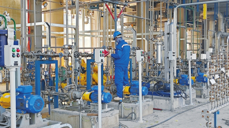 制造“綠色”,更要“綠色”制造。在廠區(qū)內,循環(huán)水站、凈水廠、污水站等廢棄物處理區(qū)早已拔地而起,進入試運行環(huán)節(jié)。“廠區(qū)所產生的廢氣經過DFTO處理達標排放,廢固由資質單位集中回收處理,污水經過凈水處理、回用水裝置回收循環(huán)利用,可實現(xiàn)零排放。另外,還充分回收利用了開發(fā)區(qū)內的新石能源公司產生的焦爐氣作為燃料,讓綠色環(huán)保貫穿產品始終?!表椖抗こ處煆埡陚ソ榻B道。