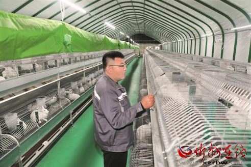 11月12日,原平市段家堡鄉(xiāng)譽佳肉兔養(yǎng)殖示范基地,技術(shù)人員正在觀察肉兔生長情況。近年來,該鄉(xiāng)創(chuàng)新推行“黨建引領(lǐng)+公司搭臺+養(yǎng)殖戶受益”的新模式,通過養(yǎng)殖企業(yè)搭建平臺,提供兔苗、飼料、防疫等服務(wù),確保養(yǎng)殖戶收益穩(wěn)定,讓生態(tài)養(yǎng)殖成為了助力鄉(xiāng)村振興的“金鑰匙”。 褚 震攝
