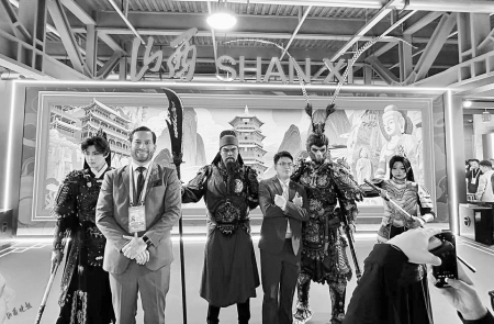 第八屆中國國際進(jìn)口博覽會(huì)山西展廳前,與熱門IP人物互動(dòng)合影的觀眾絡(luò)繹不絕。