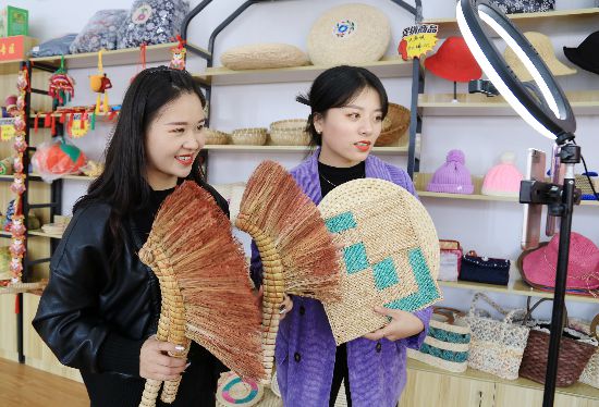 10月16日,安徽淮南市一家參展企業(yè)通過直播平臺,進(jìn)行線上壽州香草香包展示。陳彬攝(人民視覺)