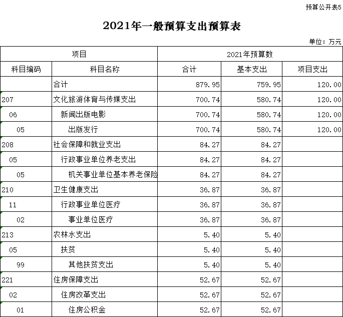 5、一般公共預(yù)算支出情況表