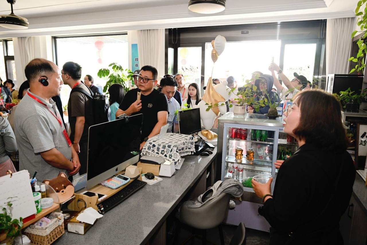 村里蕓溪民宿的“潮趣”營地,讓記者們見識到了“潮鄉(xiāng)”傳統(tǒng)之外時尚、新銳一面。民宿主理人是80后返鄉(xiāng)青年宋曉燕,在“家門口”實現(xiàn)了開民宿的夢想。“蕓溪”背靠浙北最美公路翁金線、面朝錢塘江,如今,有了這“潮趣”營地,就能讓客人們想安靜時要一間房、泡一壺茶;愛熱鬧的,呼朋喚友一起燒烤、露營,共赴“江岸野趣”;或是帶著小朋友來摘野菜、喂小動物,與大自然來一次親密接觸……宋曉燕將“蕓溪”經(jīng)營成了具有鄉(xiāng)村煙火氣、人情味的驛站,讓南來北往的客人們在這里找到了“回家”的感覺。已是“銀宿”級別的“蕓溪”,因為極好的口碑,目前客房訂單已排到“五一”假期。