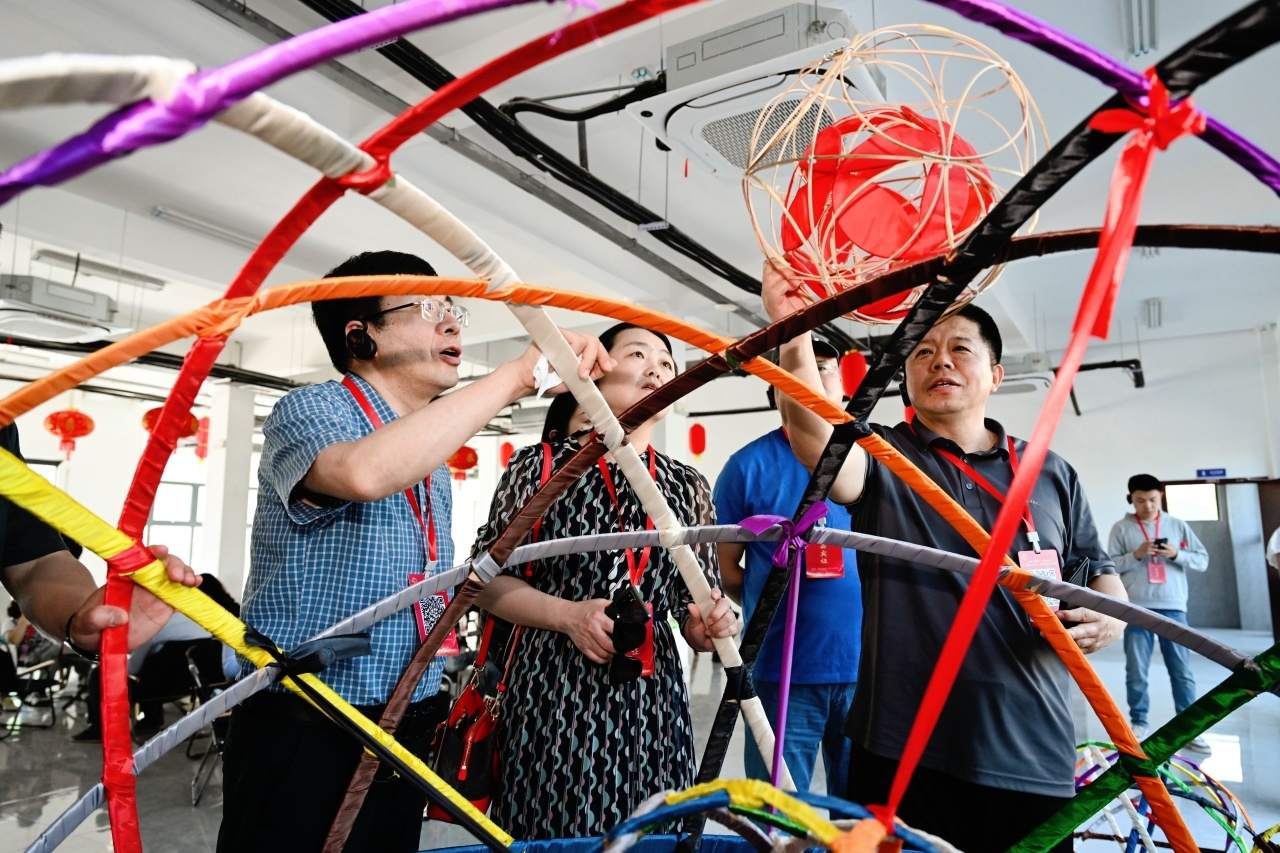 在“滾燈”文化公園,記者團親身感受了一把“潮鄉(xiāng)”的“滾燈”藝術(shù)的魅力。“滾燈”源自江南一帶的民間節(jié)日慶典,融合了舞蹈、技巧與體育精髓,愛好者展示給記者們的金港村“滾燈”,其制作工藝之考究讓大伙都嘖嘖贊嘆。