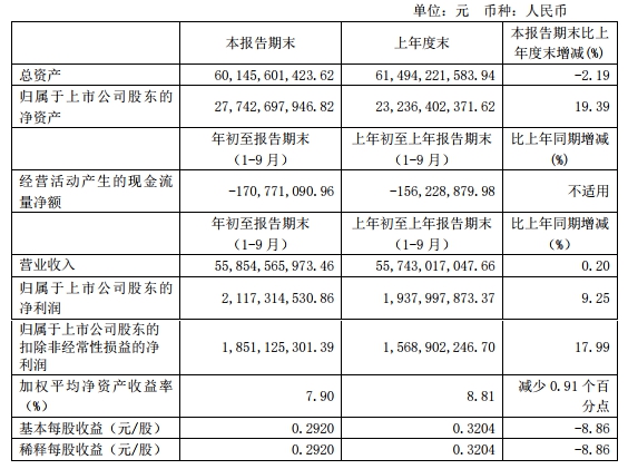 據(jù)三季報(bào),2019年1-9月,中國(guó)外運(yùn)實(shí)現(xiàn)營(yíng)業(yè)收入558.55億元,較上年同期增長(zhǎng)0.20%;實(shí)現(xiàn)歸屬于上市公司股東的扣除非經(jīng)常性損益的凈利潤(rùn)18.51億元,較上年同期增長(zhǎng)17.99%;經(jīng)營(yíng)活動(dòng)產(chǎn)生的現(xiàn)金流量?jī)纛~為-1.71億元,上年同期為-1.56億元。