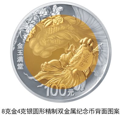 8克金4克銀圓形雙金屬紀(jì)念幣背面圖案為金魚與海棠花等組合圖案,并刊“金玉滿堂”字樣及面額。 紀(jì)念幣規(guī)格和發(fā)行量 5克圓形金質(zhì)紀(jì)念幣為精制幣,含純金5克,直徑20毫米,面額80元,成色99.9%,最大發(fā)行量5000枚。 100克圓形銀質(zhì)紀(jì)念幣為精制幣,含純銀100克,直徑60毫米,面額30元,成色99.9%,最大發(fā)行量10000枚。 60克圓形銀質(zhì)紀(jì)念幣為精制幣,含純銀60克,直徑40毫米,面額20元,成色99.9%,最大發(fā)行量20000枚。 3克心形金質(zhì)紀(jì)念幣為精制幣,含純金3克,外接正方形邊長18毫米,面額50元,成色99.9%,最大發(fā)行量10000枚。 30克心形銀質(zhì)紀(jì)念幣為精制幣,含純銀30克,外接正方形邊長40毫米,面額10元,成色99.9%,最大發(fā)行量20000枚。 8克金4克銀圓形雙金屬紀(jì)念幣為精制幣,含純金8克、純銀4克,直徑30毫米,面額100元,成色99.9%,最大發(fā)行量5000枚。 100元,成色99.9%,最大發(fā)行量5000枚。 紀(jì)念幣發(fā)售途徑 該套金銀紀(jì)念幣由上海造幣有限公司、沈陽造幣有限公司和深圳國寶造幣有限公司鑄造,中國金幣總公司總經(jīng)銷。 (責(zé)任編輯:蔡文斌) |