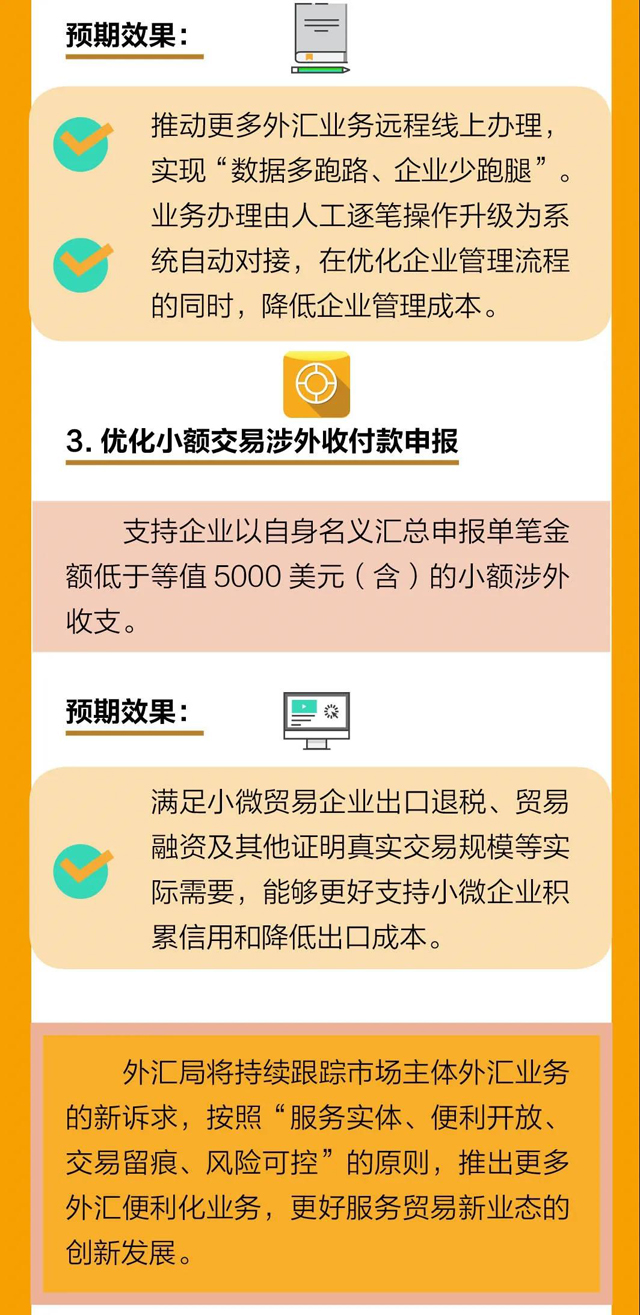 記者梳理發(fā)現(xiàn),《通知》包括9方面內(nèi)容,聚焦解決貿(mào)易新業(yè)態(tài)“小額、高頻、電子化”交易中結(jié)算不便捷問題。政策設(shè)計(jì)上,遵循“鼓勵創(chuàng)新、包容審慎”原則,積極適應(yīng)貿(mào)易新業(yè)態(tài)發(fā)展的實(shí)際需要。按照“服務(wù)實(shí)體、便利開放、交易留痕、風(fēng)險(xiǎn)可控”要求,放寬貿(mào)易新業(yè)態(tài)外匯政策,優(yōu)化外匯服務(wù),便利相關(guān)外匯業(yè)務(wù)辦理,實(shí)施“交易越合規(guī)、匯兌越便利”的信用約束和分類管理。