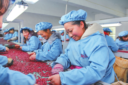 岢嵐有野生沙棘49萬畝。宋家溝功能食品有限公司是一家從事沙棘全產(chǎn)業(yè)鏈精深加工的開發(fā)企業(yè)?!笆袌?chǎng)上沙棘汁常見,但沙棘茶不多見?!笨偨?jīng)理張艷峰介紹,其實(shí)早在1977年沙棘就入了藥典,藥用價(jià)值、食用價(jià)值非常高?,F(xiàn)在人們對(duì)健康養(yǎng)生非常重視,為此,公司組織科研力量進(jìn)行攻關(guān),成功開發(fā)出沙棘茶,廣受市場(chǎng)歡迎。“我們以每斤2元的價(jià)格從村民手里收購沙棘鮮葉,村民只要上趟山采摘,回來就能變成錢?!?/p>