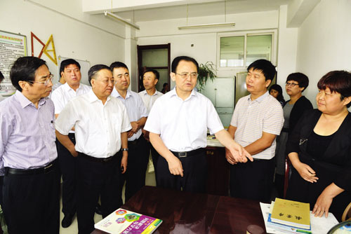 本報(bào)訊(記者任逢春)帶著溫馨祝福,送去濃濃關(guān)懷。在第32個教師節(jié)來臨之際,9月9日,市委書記李俊明帶領(lǐng)市直有關(guān)部門負(fù)責(zé)人深入城鄉(xiāng)學(xué)校,向奮戰(zhàn)在一線的教育工作者致以節(jié)日祝賀和問候,并就基礎(chǔ)教育工作進(jìn)行調(diào)研。李俊明強(qiáng)調(diào),教育事業(yè)關(guān)系千家萬戶,關(guān)系子孫后代,要堅(jiān)持改革、規(guī)范、發(fā)展,在促進(jìn)教育的均衡發(fā)展與人的全面發(fā)展上下功夫,在著力解決因教致貧、因教返貧,斬?cái)嘟逃毨ТH傳遞上下功夫,為我市全面脫貧、全面小康提供智力支持和人才保障。市委常委梁潔等一同調(diào)研慰問。