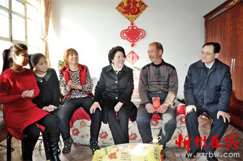 在東冶鎮(zhèn)永安村徐計(jì)文家,胡蘇平詳細(xì)了解家庭生產(chǎn)生活情況,詢問(wèn)徐妻的病情,得知3個(gè)孩子都在上學(xué)、家中因病因?qū)W致貧后指出,扶貧必扶智,把孩子培養(yǎng)出來(lái)是根本的扶貧之策。她鼓勵(lì)徐計(jì)文夫婦樹(shù)立信心,咬緊牙關(guān),挺過(guò)暫時(shí)困難,用心把孩子們培養(yǎng)成人,并祝愿徐計(jì)文一家新的一年有大的轉(zhuǎn)變。村民徐喜堂在10多年前因事故腰椎受傷,不能從事重體力勞動(dòng),胡蘇平了解到他正在經(jīng)營(yíng)大棚,但設(shè)施落后、產(chǎn)出效益不好時(shí),隨即指示省人大駐村第一書(shū)記幫助設(shè)計(jì)改造大棚設(shè)施,適度擴(kuò)大種植規(guī)模,完善功能,增加種植品種,提高家庭收入,盡快脫貧致富。調(diào)研期間,胡蘇平囑咐貧困群眾,各級(jí)黨委和政府一定會(huì)按照中央和省委的部署,想方設(shè)法幫助他們解決具體困難,幫他們?cè)缛彰撠毐夹】?。同日,省人大常委?huì)13名專委主任分赴東治鎮(zhèn)和陽(yáng)白鄉(xiāng)的8個(gè)包扶村貧困群眾家中進(jìn)行調(diào)研、慰問(wèn)。