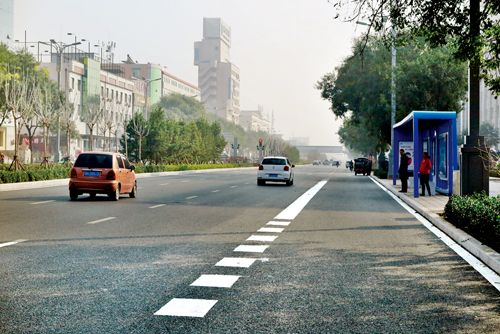 圖為10月12日早晨,改造通車(chē)的長(zhǎng)征西街街寬路闊,綠植吐翠,市民在新建的公交站臺(tái)等待公交車(chē)。魯明強(qiáng) 攝
