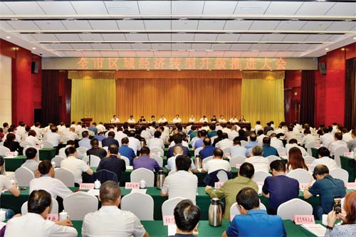 會議指出,要在六方面做好轉(zhuǎn)型升級工作。第一,在規(guī)劃與指導(dǎo)上,要把握高度,突出精度。必須清醒地把握轉(zhuǎn)型升級的大背景、大趨勢,全市上下要強(qiáng)化不轉(zhuǎn)沒出路、慢轉(zhuǎn)就落后的理念,必須準(zhǔn)確把握轉(zhuǎn)型升級的新標(biāo)準(zhǔn)、新要求,始終堅(jiān)持轉(zhuǎn)型為綱、產(chǎn)業(yè)為王、創(chuàng)新為上、改革為要,要做大優(yōu)勢,補(bǔ)齊短板。必須加強(qiáng)和改善黨對經(jīng)濟(jì)工作的領(lǐng)導(dǎo),將轉(zhuǎn)型升級內(nèi)容納入市委常委會1+3季度經(jīng)濟(jì)運(yùn)行分析制度,做到底清數(shù)明、精準(zhǔn)指導(dǎo)。第二,在產(chǎn)業(yè)和項(xiàng)目上,要突出轉(zhuǎn)型、推動轉(zhuǎn)型。核心要在六大主戰(zhàn)場主陣地,突出新動能培育、新技術(shù)應(yīng)用、新產(chǎn)品開發(fā)。要緊盯產(chǎn)業(yè)項(xiàng)目不放,緊盯相關(guān)指標(biāo)不放,緊盯落后的縣(市、區(qū))和部門不放,大力推動支柱產(chǎn)業(yè)轉(zhuǎn)型升級,大力推動開發(fā)區(qū)轉(zhuǎn)型升級,大力推動民營經(jīng)濟(jì)轉(zhuǎn)型升級。要把功夫下在招商引資、招財(cái)引智和項(xiàng)目落地上。要落實(shí)責(zé)任制,將縣細(xì)化到干部和崗位。第三,在協(xié)調(diào)與環(huán)境上,要深化改革、擴(kuò)大開放。要堅(jiān)持以改革促轉(zhuǎn)型,堅(jiān)持以開放促轉(zhuǎn)型,堅(jiān)持以環(huán)保倒逼轉(zhuǎn)型,堅(jiān)持以環(huán)境保障轉(zhuǎn)型。第四,在市場與人才上,要激活主體,突出創(chuàng)新。要以更大力度推進(jìn)創(chuàng)新發(fā)展,補(bǔ)齊我市創(chuàng)新驅(qū)動短板,要發(fā)揮市場主導(dǎo)作用,強(qiáng)化企業(yè)主體地位和科技人才的主力作用,在新一輪的人才大戰(zhàn)中有所作為,引導(dǎo)創(chuàng)新要素向企業(yè)集聚。要全面深化企業(yè)改革,扎實(shí)推進(jìn)國企改革和轉(zhuǎn)型升級。要為企業(yè)家放心干、放膽干、放手干撐腰做主,要發(fā)揮金融在區(qū)域經(jīng)濟(jì)轉(zhuǎn)型中的發(fā)動機(jī)、產(chǎn)業(yè)升級中的推進(jìn)器作用,切實(shí)激發(fā)活力。第五,在責(zé)任與擔(dān)當(dāng)上,要強(qiáng)化主責(zé),聚焦主業(yè)。要認(rèn)真貫徹落實(shí)中辦印發(fā)的《關(guān)于進(jìn)一步激勵廣大干部新時(shí)代新?lián)?dāng)新作為的意見》,全面落實(shí)習(xí)近平總書記關(guān)于“三個(gè)區(qū)分開來”的重要要求,旗幟鮮明為敢于擔(dān)當(dāng)?shù)母刹繐窝膭拧J锌h黨委、政府班子成員對轉(zhuǎn)型升級要做到指標(biāo)到人、臺賬管理、動態(tài)調(diào)控、年底交賬,并作為領(lǐng)導(dǎo)班子和領(lǐng)導(dǎo)干部年度民主生活會對照檢查的重要內(nèi)容,作為干部選拔任用的重要依據(jù)。黨政部門的每一位班子成員,都要聯(lián)系一個(gè)產(chǎn)業(yè)園區(qū),抓好一個(gè)以上轉(zhuǎn)型升級示范項(xiàng)目。相關(guān)部門都要對標(biāo)履職,量化到人,共同推動今年轉(zhuǎn)型升級考核指標(biāo)應(yīng)統(tǒng)盡統(tǒng)、能升盡升、能增盡增、全力破零。第六,在考核與問責(zé)上,要分類實(shí)施,從嚴(yán)要求。在今年區(qū)域經(jīng)濟(jì)轉(zhuǎn)型升級考核中排后三位的要公開作出檢查。