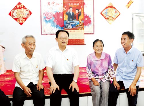 圖為省人大常委會副主任、市委書記李俊明在忻府區(qū)解原鄉(xiāng)大莊村慰問困難老黨員馬補(bǔ)田。(本報記者 劉紀(jì)森 攝)