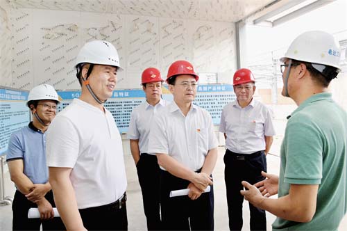 圖為省人大常委會副主任、市委書記李俊明在忻州經(jīng)濟(jì)開發(fā)區(qū)調(diào)研藍(lán)寶石晶體及晶片制造加工項(xiàng)目建設(shè)情況。本報(bào)記者 劉紀(jì)森 攝