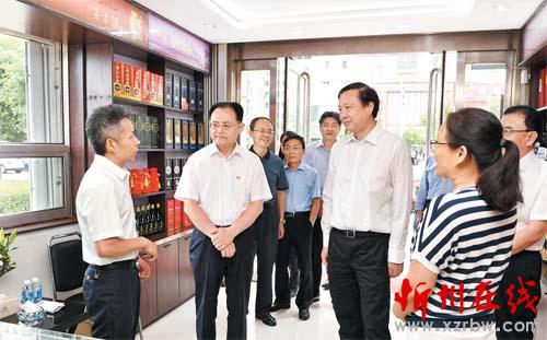 圖為國家煙草專賣局黨組書記、局長張建民(右三)在我市調(diào)研卷煙零售市場。本報記者 劉紀(jì)森 攝