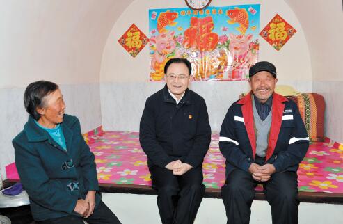 圖為省人大常委會副主任、市委書記李俊明在偏關(guān)縣新關(guān)鎮(zhèn)高家上石會村高長后家了解增收脫貧情況。本報記者 宮愛文攝