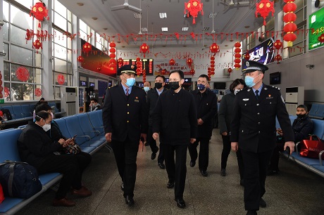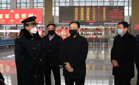 省人大常委會(huì)副主任、市委書(shū)記李俊明在火車(chē)站檢查督導(dǎo)疫情防控措施準(zhǔn)備情況 本報(bào)記者 劉紀(jì)森 攝