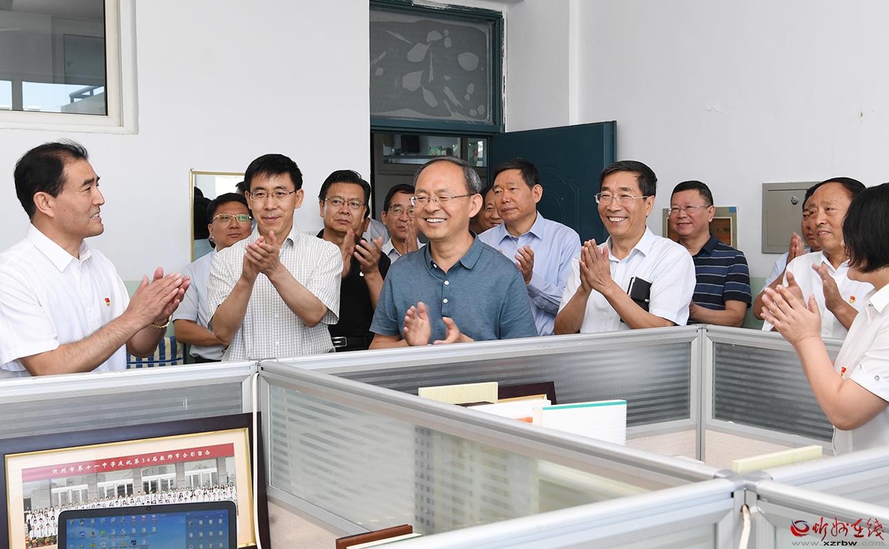 近年來,忻州一中優(yōu)生培養(yǎng)取得階段性成果,綜合辦學(xué)水平大幅提升,高考一本達(dá)線率連年在85%以上,二本達(dá)線率逼近百分之百,教育質(zhì)量享譽(yù)三晉,教學(xué)成績位列全省第一方陣,這些都離不開該校全體教師的辛勤付出。鄭連生一行詳細(xì)察看了校園環(huán)境,并到數(shù)學(xué)教研室與教師進(jìn)行交流,聽取教育教學(xué)意見,詢問工作生活上的困難。鄭連生指出,百年大計(jì),教育為本;教育大計(jì),教師為本,教師是教育事業(yè)發(fā)展的基礎(chǔ),要高度重視并切實(shí)抓好教師隊(duì)伍建設(shè),不斷提升教師的教學(xué)水平,為教師的工作和生活創(chuàng)造便利條件。各級(jí)各部門要始終堅(jiān)持教育優(yōu)先發(fā)展戰(zhàn)略,加大財(cái)政投入,加強(qiáng)政策支持,全面優(yōu)化教育發(fā)展環(huán)境,推動(dòng)忻州教育水平再上新臺(tái)階,為我市經(jīng)濟(jì)社會(huì)發(fā)展培養(yǎng)更多人才。