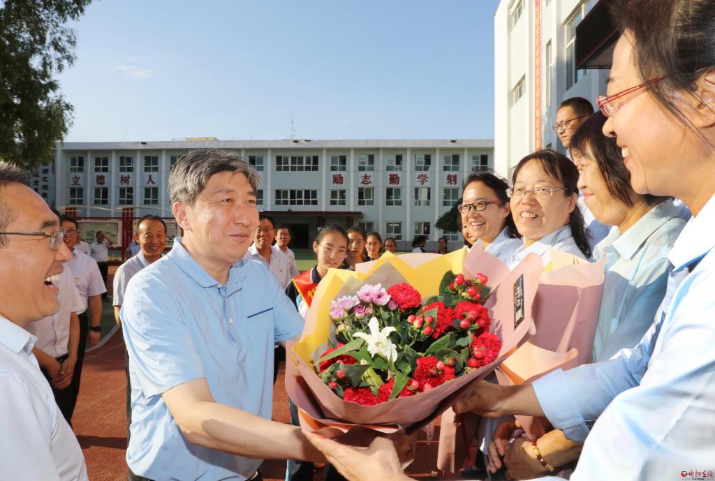 每到一處,朱曉東都向教師們致以節(jié)日問候。長征小學(xué)西校區(qū)是一所高標(biāo)準(zhǔn)規(guī)劃、高水平建設(shè)的新建學(xué)校,今年秋季學(xué)期投入使用。朱曉東察看電子圖書閱覽等教學(xué)新設(shè)施,了解學(xué)校開設(shè)的書法、歌唱、手工、足球、乒乓球、跆拳道、機(jī)器人組裝等特色教育課程,隨機(jī)檢查學(xué)生飲用水機(jī)具,向從基層選拔聘用的優(yōu)秀教師代表贈(zèng)送書籍,勉勵(lì)大家珍惜崗位,肩負(fù)起時(shí)代賦予的重任,全心全意培養(yǎng)好人才。具有40多年歷史的忻州六中辦學(xué)底蘊(yùn)厚重,近年來與時(shí)俱進(jìn)提升教學(xué)能力。朱曉東實(shí)地了解學(xué)校發(fā)展情況后,一一為教師代表獻(xiàn)上鮮花,感謝大家辛勤付出,希望學(xué)校越辦越好,讓孩子們在學(xué)校有更多收獲。忻州高級(jí)中學(xué)教學(xué)設(shè)施先進(jìn),教師隊(duì)伍素質(zhì)高、經(jīng)驗(yàn)豐富,今年學(xué)校畢業(yè)班高考再次取得好成績。朱曉東詳細(xì)了解學(xué)校歷史和往屆學(xué)生成就,鼓勵(lì)教師們放長眼光,對(duì)照更高標(biāo)準(zhǔn)繼續(xù)努力,為忻州增光添彩。
