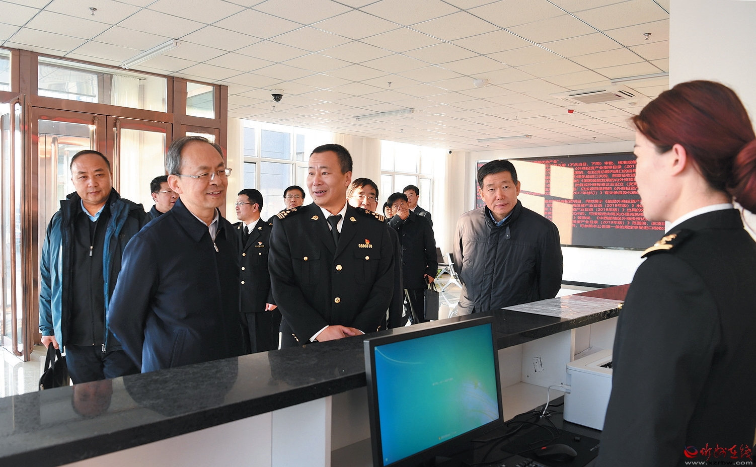 自今年10月份開關(guān)以來,忻州海關(guān)結(jié)合忻州外向型經(jīng)濟(jì)發(fā)展實(shí)際,緊緊圍繞市委市政府相關(guān)工作部署,積極為忻州外貿(mào)穩(wěn)定發(fā)展服務(wù),保障產(chǎn)業(yè)鏈供應(yīng)鏈穩(wěn)定,打造忻州對外開放平臺,筑牢國家安全屏障,為促進(jìn)忻州經(jīng)濟(jì)高質(zhì)量轉(zhuǎn)型發(fā)展作出了貢獻(xiàn)。在海關(guān)報(bào)關(guān)大廳,鄭連生與工作人員進(jìn)行交流,向他們了解進(jìn)出口業(yè)務(wù)開展情況,鼓勵(lì)他們要不斷強(qiáng)化監(jiān)管、優(yōu)化服務(wù),為企業(yè)提供更高效、便捷、優(yōu)質(zhì)的服務(wù),促進(jìn)地方外向型經(jīng)濟(jì)發(fā)展。在消防控制室和實(shí)驗(yàn)室,鄭連生察看了各種專業(yè)設(shè)備配置運(yùn)行情況,了解了出入境檢驗(yàn)檢疫等相關(guān)工作情況。他希望忻州海關(guān)繼續(xù)著眼經(jīng)濟(jì)社會(huì)發(fā)展大局,弘揚(yáng)海關(guān)優(yōu)良作風(fēng),發(fā)揮海關(guān)職能作用,創(chuàng)新海關(guān)監(jiān)管制度,依法守好國門,推動(dòng)通關(guān)便利化,全面提升服務(wù)對外開放的能力和水平,幫助企業(yè)做大做強(qiáng)。