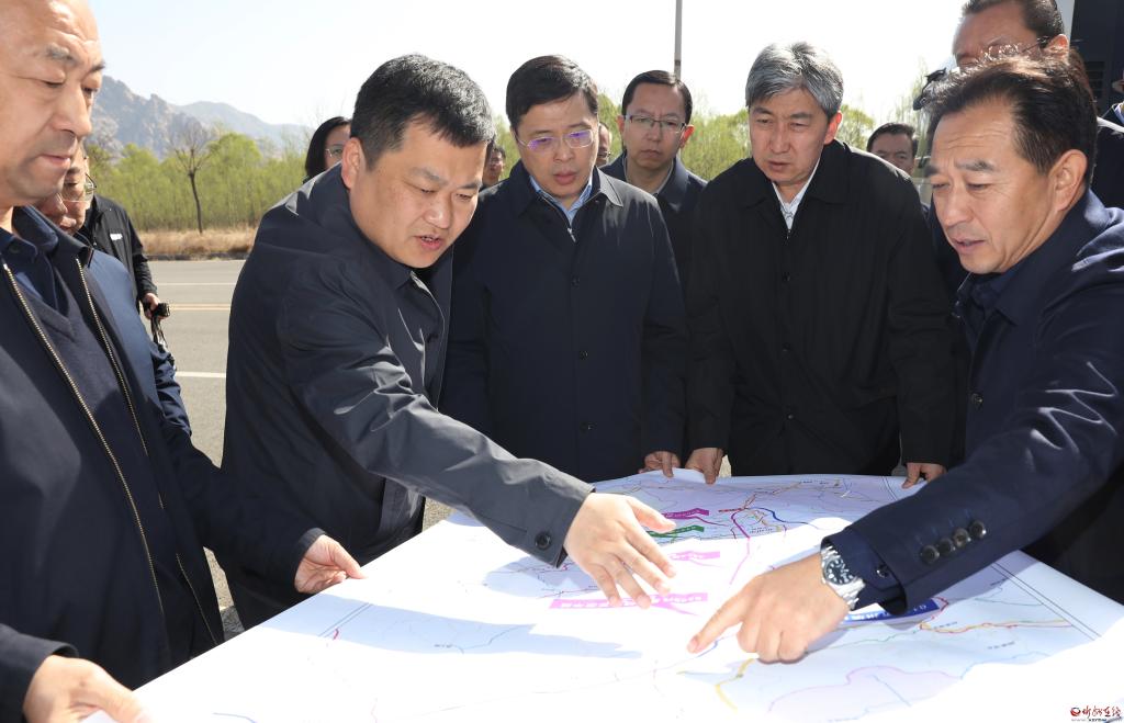 在原平市前進街東拓項目調(diào)研公路建設(shè)情況。范濤 攝 原平市前進街東拓項目既是長城板塊旅游公路,也是原平市打破鐵路公路切割城區(qū)的困局、拉大框架跳出去發(fā)展的系列城建工程之一,一路四橋一互通各項目節(jié)點正在加快推進。韋韜指出,要充分發(fā)揮原平緊鄰忻州城區(qū)的優(yōu)勢,統(tǒng)籌謀劃推進交通設(shè)施建設(shè),進一步集聚人流物流資金流,通過旅游產(chǎn)業(yè)提升影響力、帶動相關(guān)產(chǎn)業(yè)發(fā)展,以旅游接待能力的提升倒逼城市管理水平的提高和設(shè)施條件的完善。