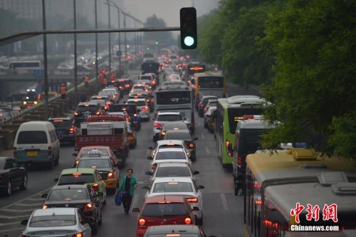 資料圖:圖為北京東三環(huán)主路擁堵嚴重。中新網(wǎng)記者 金碩 攝