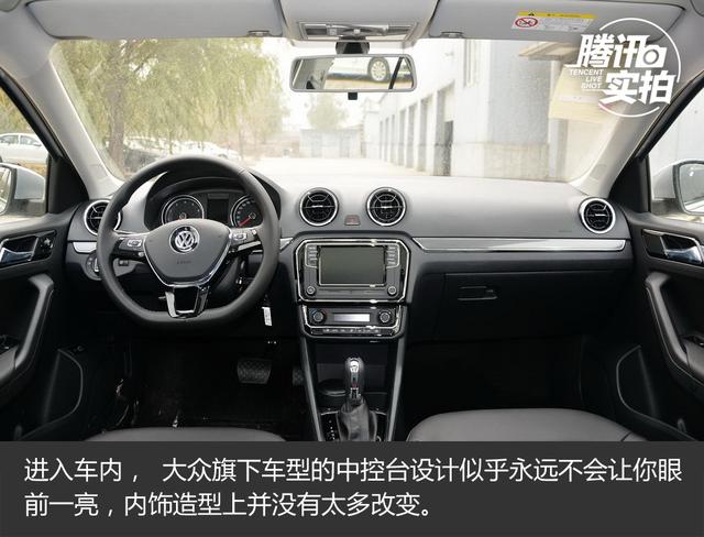 進入車內(nèi), 大眾旗下車型的中控臺設(shè)計似乎永遠不會讓你眼前一亮,內(nèi)飾造型上并沒有太多改變。全新三輻平底方向盤是最大改變,盤輻大小正好,握感也很不錯,鋼琴烤漆的飾條更是點睛之筆,兩側(cè)多功能按鍵可以控制多媒體和藍牙電話等功能。儀表盤的底紋有所改變,黑底白字清晰易讀,中央是單色行車電腦顯示屏。車內(nèi)空調(diào)出風(fēng)口造型有所調(diào)整,內(nèi)部構(gòu)造更加復(fù)雜。