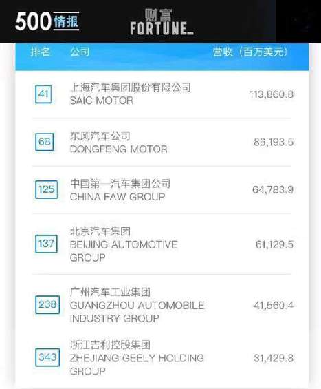 2017年7月20日,美國(guó)《財(cái)富》雜志正式公布“2017世界500強(qiáng)企業(yè)”排名。在今年的榜單中,中國(guó)上榜公司數(shù)量連續(xù)十四年增長(zhǎng),達(dá)到115家,僅次于美國(guó),遠(yuǎn)遠(yuǎn)超越排在第三位的日本。而在這些大型企業(yè)佼佼者中,共有6家中國(guó)車企成功入選,分別是:上海汽車集團(tuán)股份有限公司,位列41名;東風(fēng)汽車公司,位列68名;中國(guó)第一汽車集團(tuán)公司,位列125名;北京汽車集團(tuán),位列137名;廣州汽車工業(yè)集團(tuán),位列238名;浙江吉利控股集團(tuán),位列343名。6家車企2016年?duì)I收總和達(dá)3989.59億美元,凸顯“中國(guó)制造”不俗實(shí)力。