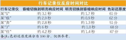 此次測試,車天下君準(zhǔn)備一個“黑盒子”,里面放置一個屏幕常亮的智能手機。在“黑盒子”外面,放置另外一個屏幕常亮的智能手機。切換時間控制在0.3秒之內(nèi),分為“明到暗”和“暗到明”兩個環(huán)節(jié),記錄行車記錄儀場景切換時的響應(yīng)時間。由測試結(jié)果一覽表可以看到,參與測試5個型號的行車記錄儀的響應(yīng)時間都不盡相同:短則1秒,長則6秒。車天下君歸納如下,質(zhì)量合格的行車記錄儀從昏暗切換到明亮環(huán)境的響應(yīng)時間應(yīng)在3~4秒之間,從明亮切換到昏暗環(huán)境當(dāng)中的響應(yīng)時間應(yīng)該在1~2秒之內(nèi)。