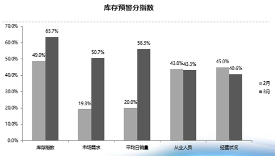 流通協(xié)會(huì)副秘書(shū)長(zhǎng)郎學(xué)紅表示,3月,增值稅下調(diào)政策及部分地區(qū)國(guó)五/國(guó)六車型切換導(dǎo)致部分消費(fèi)者持幣觀望,汽車市場(chǎng)整體銷量不佳。再加上經(jīng)銷商季度末為拿返利主動(dòng)增加庫(kù)存,經(jīng)營(yíng)壓力仍然較大。 市場(chǎng)需求現(xiàn)好轉(zhuǎn) 4月經(jīng)營(yíng)狀況仍不樂(lè)觀 從庫(kù)存預(yù)警分指數(shù)來(lái)看,庫(kù)存指數(shù)、市場(chǎng)需求指數(shù)、平均日銷量指數(shù)環(huán)比上升;從業(yè)人員指數(shù)、經(jīng)營(yíng)狀況指數(shù)環(huán)比下降。郎學(xué)紅表示,市場(chǎng)需求和日均銷量有明顯提升,然而由于經(jīng)銷商主動(dòng)增加庫(kù)存和增值稅調(diào)整帶來(lái)的消費(fèi)者觀望,使得經(jīng)營(yíng)狀況并未出現(xiàn)好轉(zhuǎn)。