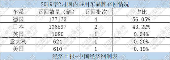 分車系來看,3月,德系和日系累計(jì)召回汽車數(shù)量占召回總量多達(dá)99.27%。其中,德系共4個(gè)品牌累計(jì)召回汽車177173輛,占召回總量的56.05%,數(shù)量最多;日系共2個(gè)品牌累計(jì)召回汽車136597輛,占比43.22%;此外,英國(guó)、意大利、美國(guó)各有一品牌發(fā)布了召回公告,但三車系總共召回?cái)?shù)量不足總量的1%。值得注意的是,繼2月之后,3月仍無自主品牌發(fā)布召回信息。