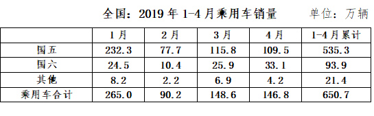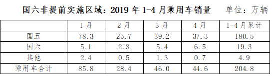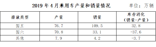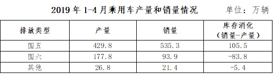 中汽協(xié)發(fā)布的數(shù)據(jù)顯示, 截至2019年4月份,我國乘用車庫銷比達3.1,遠高于行業(yè)1.5的警戒線;行業(yè)整體庫存約450萬輛,國五車輛庫存320萬輛左右(占行業(yè)庫存的71%),其中國六提前實施區(qū)域的國五車輛庫存175-220萬輛(調研企業(yè)推算得出)。