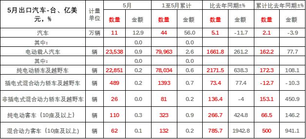 5月,我國出口汽車10.6萬輛,同比增長5.1%。其中,新能源汽車出口2.35萬輛,同比增長1661.8%。崔東樹認(rèn)為,新能源汽車對(duì)車市實(shí)現(xiàn)高質(zhì)量增長具有一定的拉動(dòng)作用,同時(shí)也是國內(nèi)汽車出口實(shí)現(xiàn)正增長的強(qiáng)大動(dòng)力。
