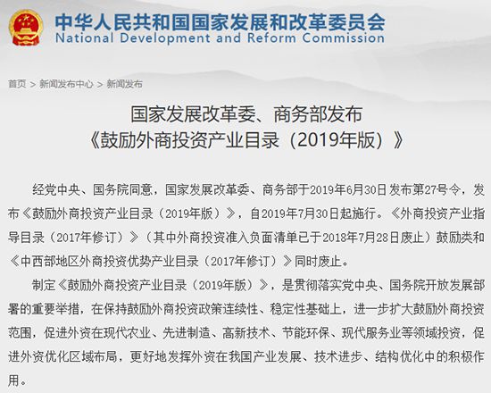 三文件均自2019年7月30日起施行,此前的《外商投資準(zhǔn)入特別管理措施(負(fù)面清單)(2018年版)》、《自由貿(mào)易試驗(yàn)區(qū)外商投資準(zhǔn)入特別管理措施(負(fù)面清單)(2018年版)》和《外商投資產(chǎn)業(yè)指導(dǎo)目錄(2017年修訂)》(其中外商投資準(zhǔn)入負(fù)面清單已于2018年7月28日廢止)鼓勵(lì)類及《中西部地區(qū)外商投資優(yōu)勢產(chǎn)業(yè)目錄(2017年修訂)》同時(shí)廢止。