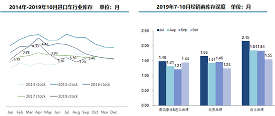 10月,進(jìn)口車經(jīng)銷商庫存深度為1.4個月,較前兩個月微升,但仍處于合理區(qū)間;行業(yè)全鏈條庫存回落到3.5個月,是近五年同期的最低點(diǎn)。流通協(xié)會方面認(rèn)為,今年進(jìn)口車庫存合理是供需雙降引起的,與2015-2016年去庫存導(dǎo)致的庫存合理有本質(zhì)區(qū)別。