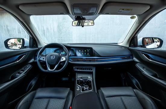 內(nèi)飾方面,長(zhǎng)安新能源CS55純電版搭載了10.25寸雙聯(lián)大屏設(shè)計(jì),支持AI小安、在線娛樂(lè)、車載微信、手機(jī)無(wú)線充電、索尼音響、四路環(huán)視行車記錄儀以及遠(yuǎn)程控制等功能。車門把手、貫穿式空調(diào)出風(fēng)口等處都加入了藍(lán)色元素裝飾,用以展示其新能源車身份。在用料上,新車使用了能明顯提高檔次的軟質(zhì)材料、皮質(zhì)包覆和鋼琴漆飾板,為用戶帶來(lái)全新豪華智慧出行體驗(yàn)。
