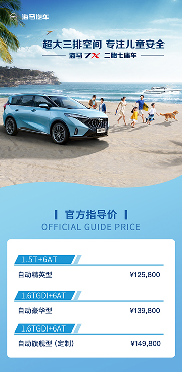 8月23日,海馬汽車旗下全新MPV海馬7X正式上市,共推出搭載1.5T/1.6TGDI兩款動(dòng)力的三款車型,售價(jià)區(qū)間12.58-14.98萬元。