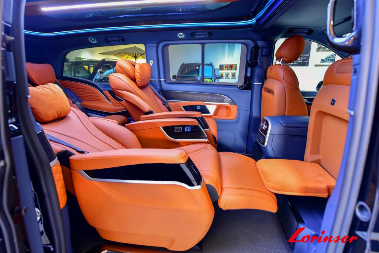 駕駛艙內飾正副駕駛座椅配備了10項電動調節(jié)(前后滑動,靠背調節(jié),升降頭枕,腰托 四方位),通風,加熱,三組記憶功能,副駕駛座椅背板:一鍵式智能半躺姿態(tài)展現(xiàn)/復位。Lorinser定制二排座椅配備了10項電動調節(jié)(前后滑動,靠背調節(jié),升降頭枕,升降腿托,升降腳踏),智能感應調節(jié),通風,加熱,氣動按摩,三組記憶功能。