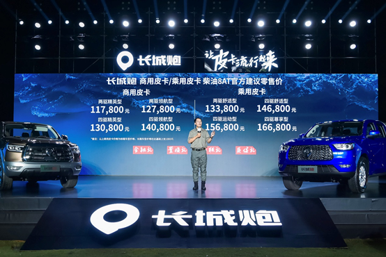 9月12日,長城炮乘用皮卡、商用皮卡柴油8AT上市。其中,長城炮商用皮卡柴油8AT售價區(qū)間為11.78萬-14.08萬元;乘用皮卡柴油8AT售價區(qū)間為13.38萬-16.68萬元。發(fā)布會上,還成立了長城炮海南商戶聯(lián)盟。