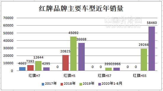 紅旗品牌主要車型近年銷量