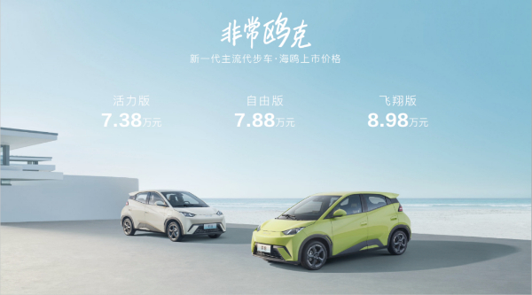 4月26日,比亞迪海鷗正式上市,售價(jià)區(qū)間為7.38萬元-8.98萬元。海鷗擁有305km和405km兩種續(xù)航里程(CLTC綜合工況)。4安全氣囊、ESP、快充等十二項(xiàng)全系標(biāo)配。不僅補(bǔ)強(qiáng)了海洋網(wǎng)的產(chǎn)品矩陣,更成為比亞迪沖擊全新市場(chǎng)空間的生力軍。上市期下訂的用戶,可享包括金融、養(yǎng)護(hù)、免費(fèi)安裝充電樁等多重權(quán)益好禮。