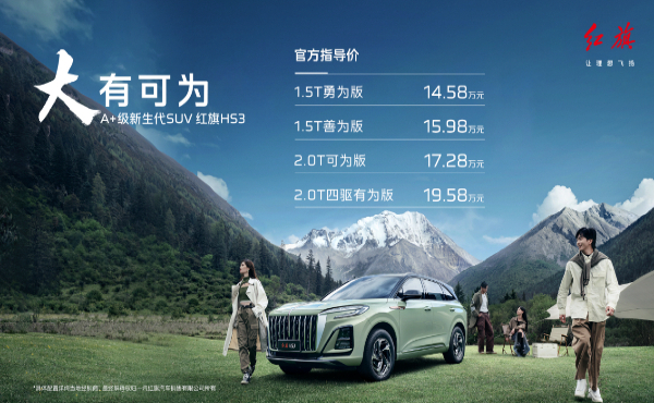 7月17日,“大有可為——紅旗HS3上市發(fā)布會(huì)暨2023紅旗粉絲盛典”在長(zhǎng)春舉行。紅旗品牌代言人演員靳東、奧運(yùn)冠軍武大靖等來(lái)自五湖四海的紅旗用戶、紅旗粉絲齊聚北國(guó)春城,共同慶祝屬于紅旗大家庭的盛大節(jié)日。活動(dòng)現(xiàn)場(chǎng),中國(guó)第一汽車集團(tuán)有限公司總經(jīng)理邱現(xiàn)東宣布紅旗HS3正式上市,官方指導(dǎo)價(jià)為14.58萬(wàn)元~19.58萬(wàn)元。