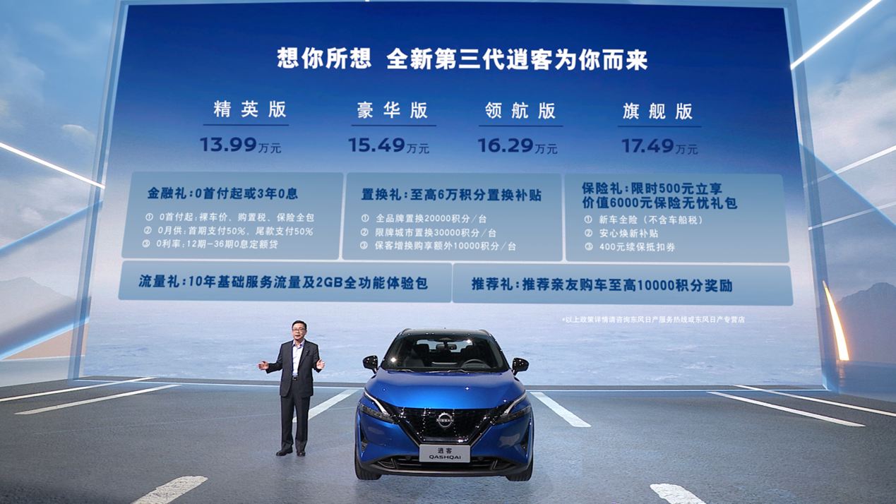全新第三代逍客官方指導價13.99萬元起,并帶來金融禮、置換禮、保險禮等多重購車福利,助力積極進取、自在向前的年輕人輕松擁有,從容出發(fā),享受人生中每一個精彩時刻。