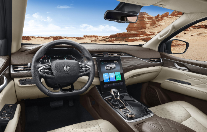 新車選用融合中國元素充滿力量感和品質感的全新LOGO,將東方雅致與西方流線型設計相融,具有強烈的視覺沖擊力;車頭的寬闊前臉搭配熏黑中網(wǎng)的蜂窩設計讓整車極具辨識度;車身尺寸方面,新車的長、寬、高分別為4882mm、1850mm、1875mm,軸距為2850mm。