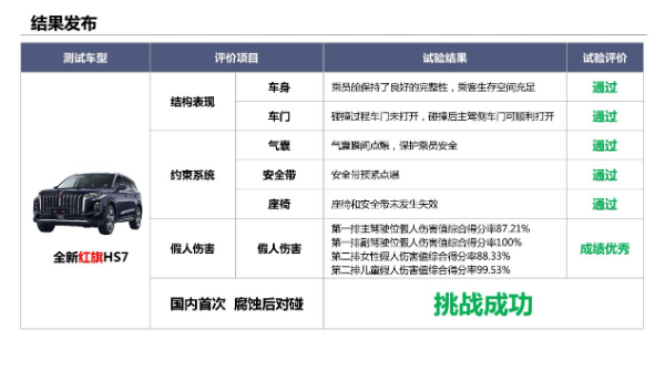 全新紅旗HS7成功通過腐蝕對碰挑戰(zhàn)并成為全國首個通過本次挑戰(zhàn)項目的車型,這一成績得益于一汽紅旗高品質(zhì)工藝。
