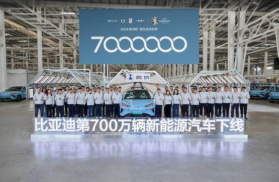 2024年3月25日,比亞迪再次刷新紀錄,成為全球首家達成第700萬輛新能源汽車下線的汽車品牌,全新騰勢N7作為下線車型在濟南工廠亮相。